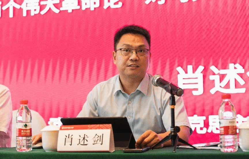 肖述剑以《“两个伟大革命论”对马克思主义政党理论的创新与实践》为题作主题发言。他从理论创新、历史经验与实践路径三个方面,系统阐述了“两个伟大革命论”的重要内容。他认为,“两个伟大革命论”是对新时代马克思主义政党理论的创新发展、是对中国共产党百年奋斗历史经验的科学总结。他指出,新时代新征程,破解大党独有难题要持续开展党的自我革命、突出以伟大自我革命引领伟大社会革命的引领效能。主题发言得到了与会专家的一致认可。