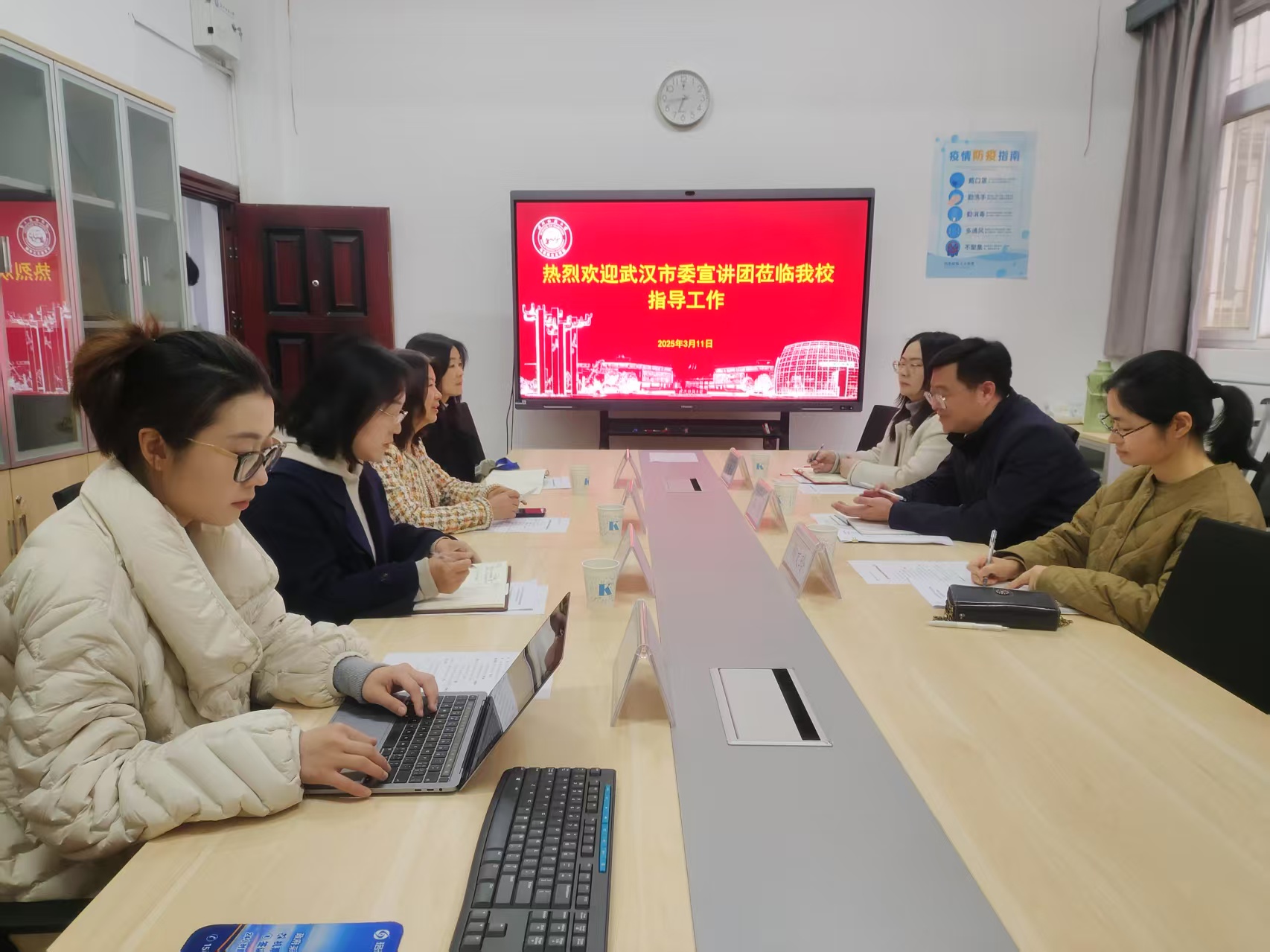 为深入贯彻落实党的二十大精神及党的二十届二中、三中全会精神,推动党的创新理论“飞入寻常百姓家”,3月11日下午,武汉市委讲师团主任李想、副主任陶文玲、理论辅导科专员李馨瑶一行3人来我校调研“武汉市理论热点面对面实践基地”建设情况,共商实践基地建设深化路径。学校宣传部、suncitygroup太阳集团网址相关负责人陪同调研,并进行了深入的座谈交流。校党委宣传部常务副部长、新闻中心主任刘戈主持座谈会。