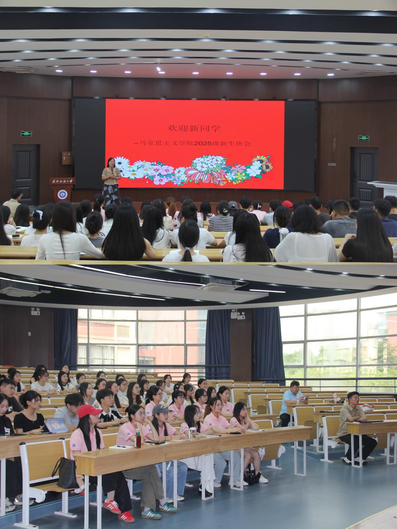 本次班会围绕新生入学教育、纪律规范、学业规划与职业发展等方面展开。会上,徐喆首先代表学院对2025级新生的到来表示欢迎,重点强调了消防安全、人身安全、防范诈骗和意识形态安全,提醒同学们增强自我保护意识,共同维护校园和谐稳定。徐喆还介绍了学院近三年毕业生的就业情况,鼓励同学们早做规划、积极参与社会实践、学术论坛等活动,充分利用学院优质的校友资源网络。徐喆寄语新生注重个人形象,在衣着、谈吐和待人处事中体现马院学子的素养,珍惜学院发展黄金期,努力成长为社会所需的高层次人才。