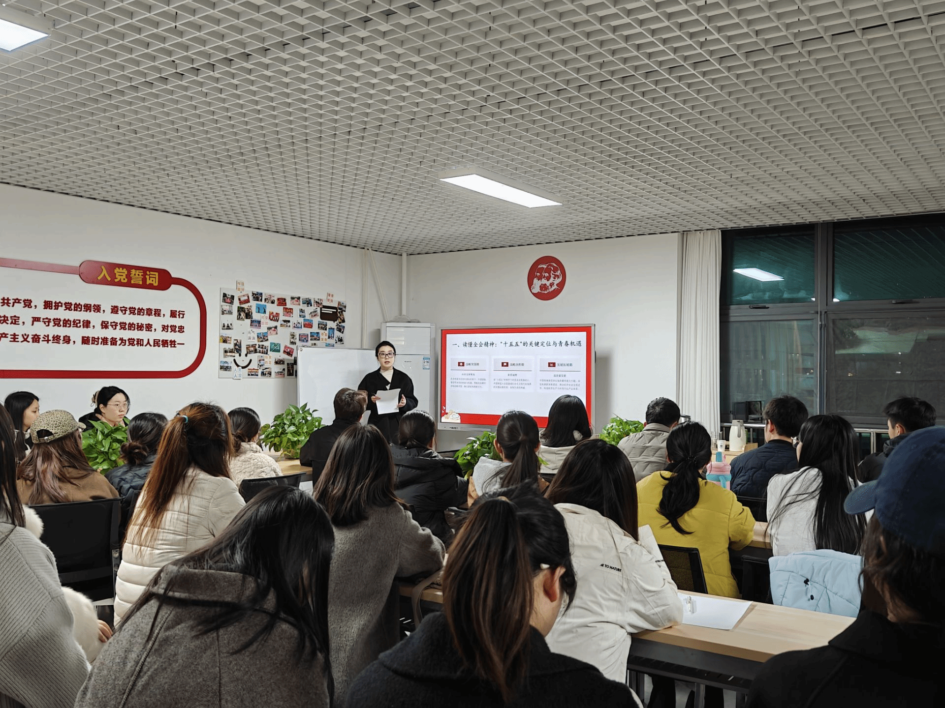 为深入学习贯彻党的二十届四中全会精神,引导青年党员在中国式现代化建设中挺膺担当,本次讲座紧密围绕“十五五”时期的战略方向与时代精神展开。蒋彭阳老师在讲座中深刻阐述了新时代青年所肩负的历史使命,强调党员同志要自觉将个人成长与国家发展紧密结合,在实现中华民族伟大复兴的征程中贡献青春力量。在科研创新领域,蒋彭阳老师鼓励党员同志要将论文写在祖国大地上,积极投身数字经济、人工智能等前沿领域研究,以扎实的学术成果服务国家高水平科技自立自强战略。在社会服务方面,她结合支部成员深入社区开展心理宣讲、参与基层治理的生动案例,强调要立足专业优势,将理论所学转化为推动高质量发展的实际效能。在践行初心方面,她号召全体党员积极投身志愿服务与学业帮扶,在办好一件件民生小事中厚植人民情怀、彰显党员本色。