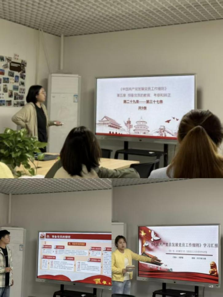 学生骨干冯梦瑶讲解了《中国共产党发展党员工作细则》总则部分,分享了发展党员工作的指导思想——坚持以马克思主义理论为指导,严格把关,确保党员质量。她强调了党支部在发展党员过程中必须坚持民主集中制原则,严禁突击发展、违规发展等违纪行为。