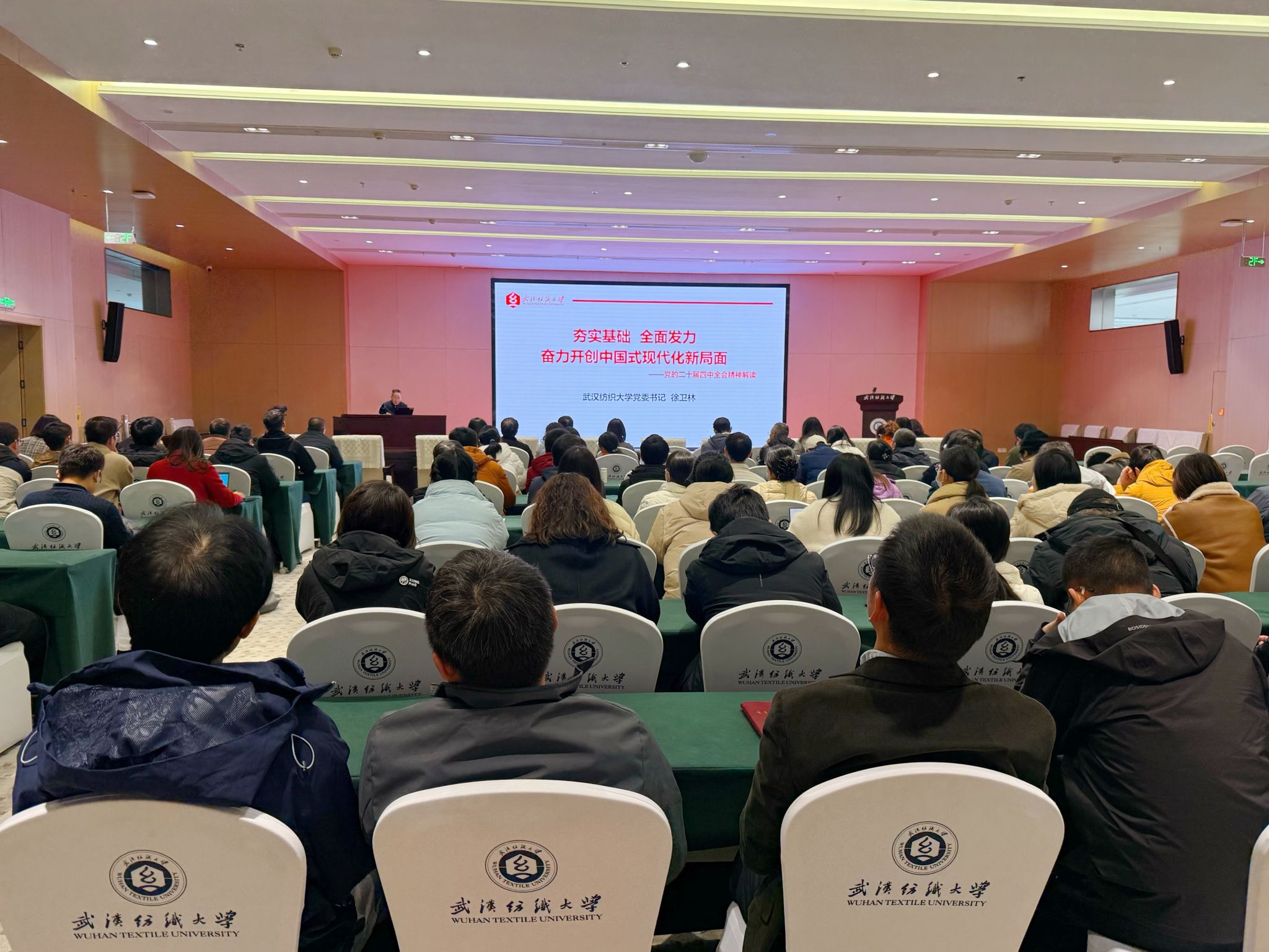 为深入学习宣传贯彻党的二十届四中全会精神,根据校党委统一部署,12月18日下午,校党委书记徐卫林院士以《夯实基础 全面发力 奋力开创中国式现代化新局面》为题,为suncitygroup太阳集团网址和纺织新材料与先进加工技术全国重点实验室师生作党的二十届四中全会精神专题宣讲报告。报告会由suncitygroup太阳集团网址党委书记邹茜主持。