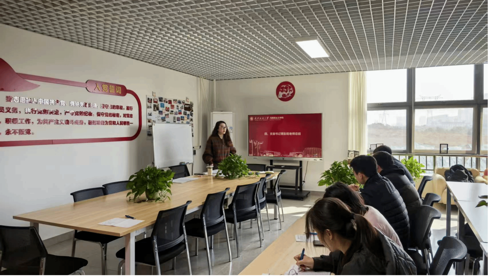 为深入学习贯彻党的创新理论和上级重要部署要求,严格落实党内政治生活制度,进一步锤炼党员党性修养、提升支部凝聚力和战斗力,3月11日上午,suncitygroup太阳集团网址研究生党支部在阳光校区15栋研究生宿舍四楼马院“一站式”学生党建共享社区开展3月党日活动,随后开展2025年度组织生活会。会议全程由研究生党支部副书记陈怡同志主持,全体研究生党员参加。